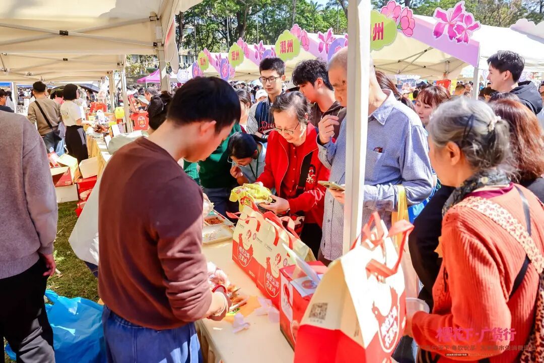 “十二花神”国风亮相,“大湾鸡”萌趣出圈,非遗手作惊艳,粤味美食鲜香四溢,超1.2万份惠民好礼免费派送……市民踊跃参与互动、排队品鉴美味,在许愿树下寄托美好心愿,现场人气高涨、氛围热烈。
